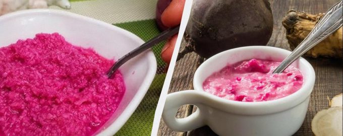 Om du frågar ukrainarna vilken deras favoritsås är, kommer många att nämna pepparrot med rödbetor. Duon av två grönsaker skapar en behaglig brännande smak. Tilltugget är 100% naturligt och även nybörjare kan klara av tillagningen. Dessutom har båda växterna många användbara egenskaper. Med denna sås kommer kallskuret eller fläskkotletter att skina i nya färger.