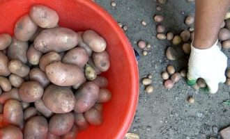 Du kan också göra utan att gräva en dike. För att göra detta, kom ihåg hur man täcker druvor för vintern skiffer. Först ska grenarna lindas in i 2-3 lager agrofiber, sedan läggas på marken och göra ett ”tak” över dem från två långa bitar av bältros.